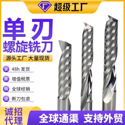 硬霸3.175單刃螺旋銑刀優質鎢鋼雕刻機亞克力pvc單刃銑 刀數控刀具 山東